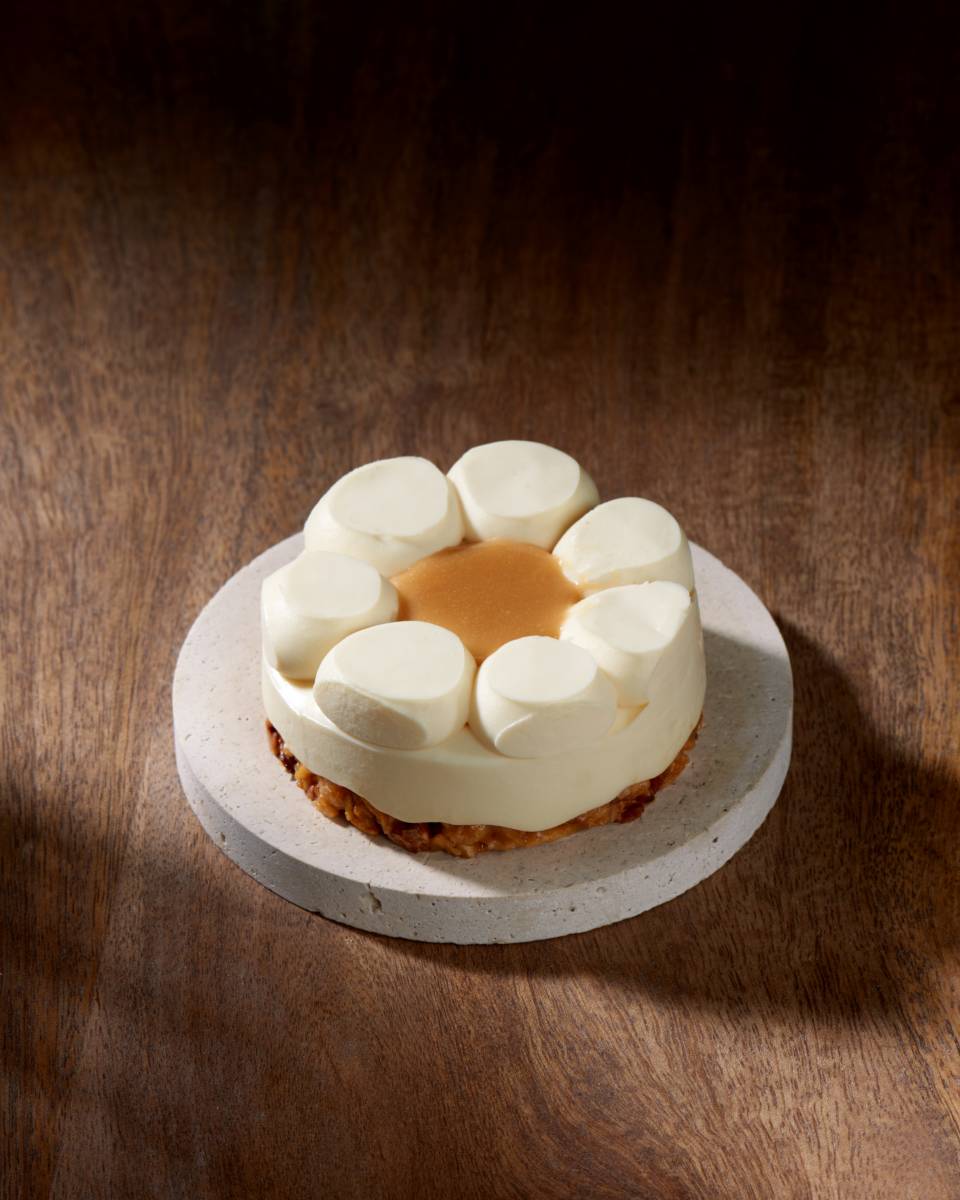 Croustillant pétale de maïs et sarrasin, caramel beurre salé, crème cacahuète