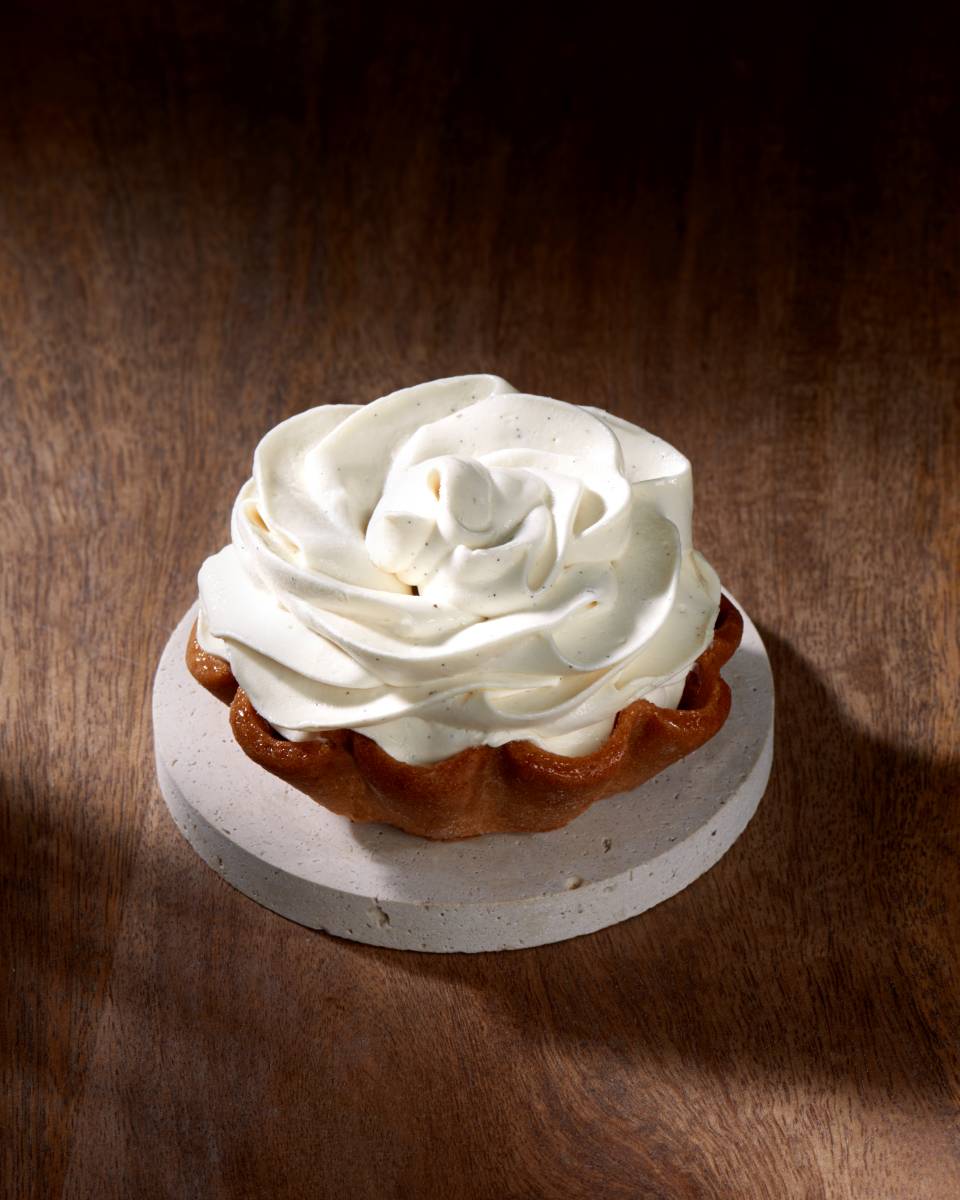 Pâte sucrée, crémeux vanille, biscuit madeleine, praliné amande-vanille,ganache montée vanille